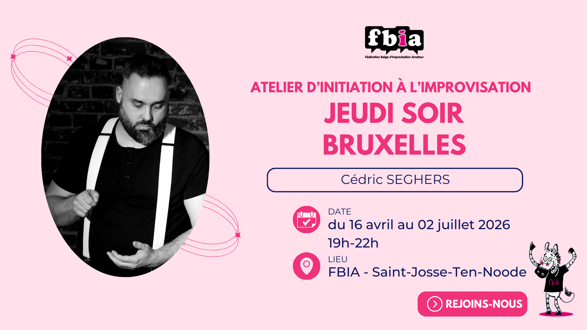 L'improvisation théâtrale est une discipline collective où tout le jeu est de construire ensembles des scènes improvisées. Nos ateliers d'initiation promettent de belles rencontres et beaucoup de fun ! Lors de ces 3 mois d’initiation, vous explorerez des outils artistiques qui vous permettront de découvrir puis de progresser collectivement et individuellement dans la discipline. Bien que ces outils puissent aider pour la confiance en soi, ils sont utilisés uniquement dans un but artistique et non thérapeutique.